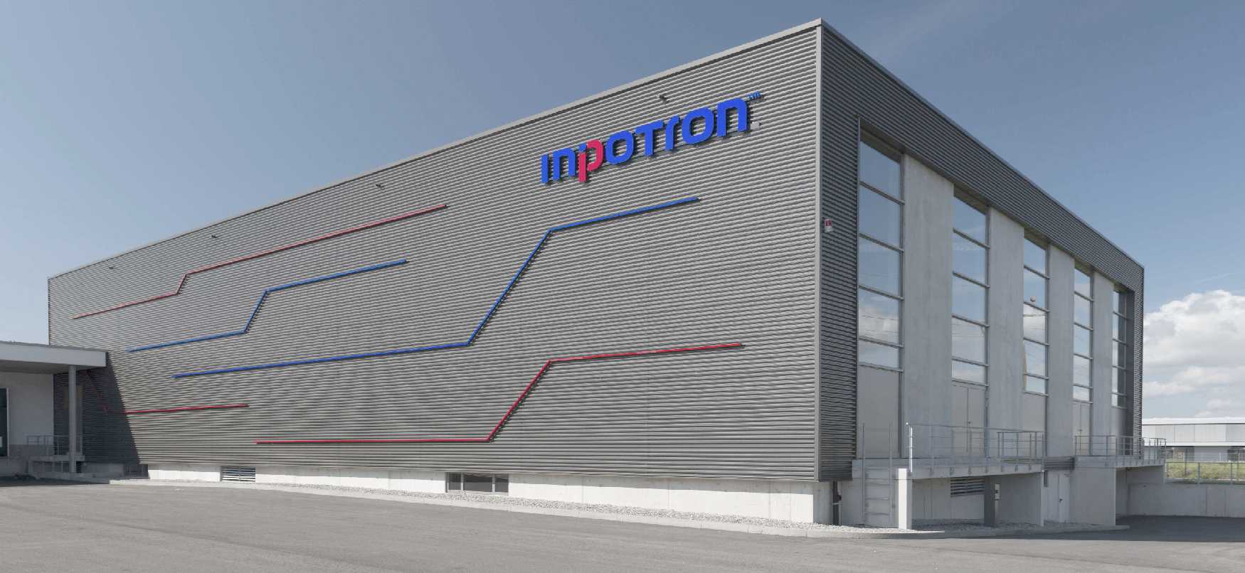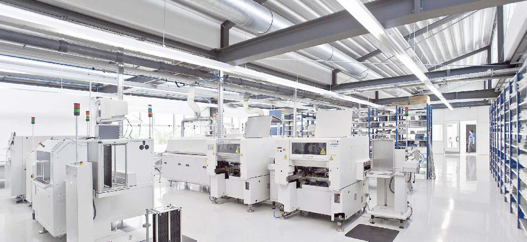 Im zweiten Bauabschnitt wurde ein Distributionszentrum errichtet. Der An- und Auslieferungsbereich ist dabei zentrales Bindeglied zwischen den Lagerbereichen und der Produktion, als Schaltzentrale für den gesamten internen und externen Warenverkehr. Seine wichtige Funktion für den Betriebsablauf sollte auch in der Architektur zu erkennen sein. Deshalb wurde die eingeschossige Bauweise der Produktion mit den Gasbetonwandflächen weitergeführt. Der neue Bereich soll optisch mit der Produktion verschmelzen und eine Einheit bilden. Das Regellager mit seinen großen Dimensionen sollte der Verwaltung einen zweiten ortho-gonalen Riegel entgegensetzen, um den Betriebshof mit der Anlieferung als Platz zu fassen. Die fensterlosen Längsseiten erhielte Lichtbahnen in LED-Technik, als Symbol für die Leiter-bahnen der Schaltnetzteile.